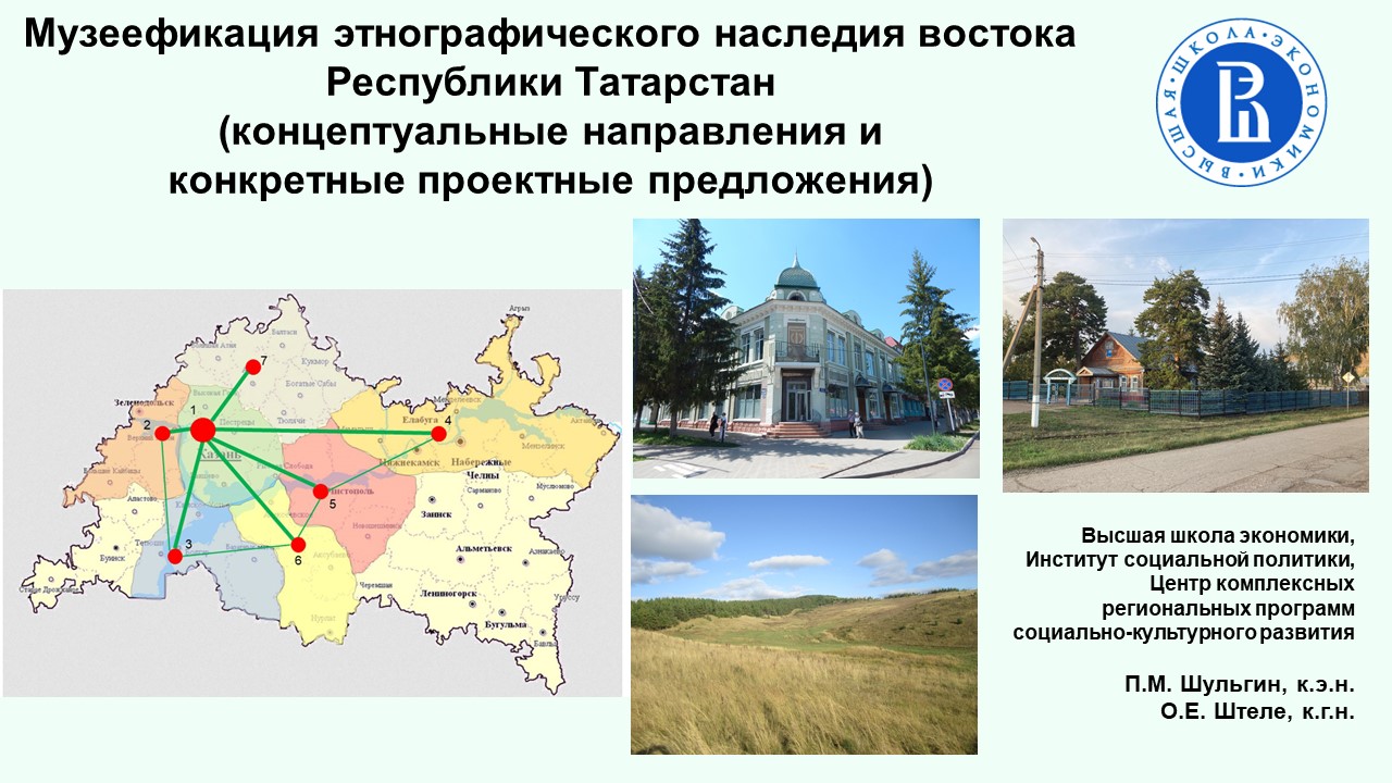 The report analyzed the emerging model of using the cultural potential of the Republic of Tatarstan. It identified seven major established centers in the republic, which were formed on the basis of museum-reserves and have become nodes of the cultural framework of Tatarstan. Attention was drawn to the "white spots" – the missing links of the cultural framework in the west and east of Tatarstan.